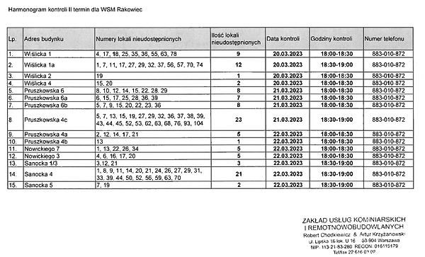 WSM Rakowiec zwraca się z prośbą do mieszkańców o podanie faktycznej liczby osób zamieszkujących lokal.